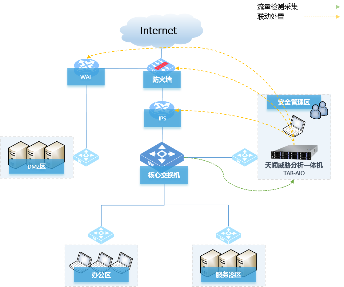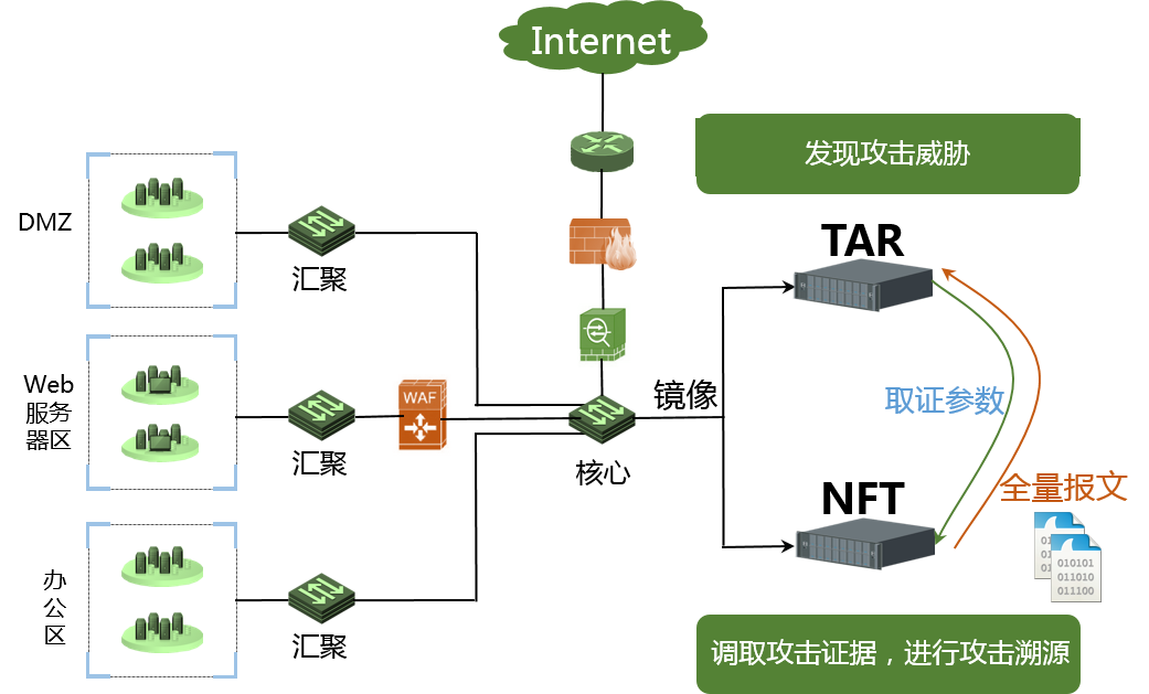 部署环境:旁路部署在数据中心、生产网服务侧