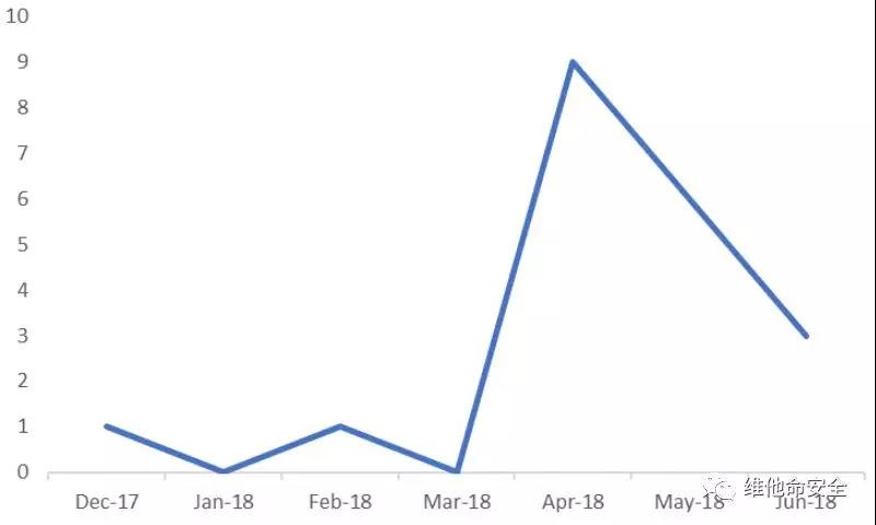 赛门铁克研究人员发现一个以前未知的犯罪团伙Gallmaker。该组织至少从2017年12月开始活跃,其攻击活动在2018年第二季度有所增长,其中在2018年4月出现了飙升。该组织主要针对政府、军队和国防目标,包括东欧国家的海外大使馆、中东的部分军事和国防目标等。该组织的活动似乎是高度针对性的,其似乎完全依赖于LotL策略和公开的黑客工具,这使得其活动极难被发现。该组织可能是由国家资助的一个网络间谍活动。