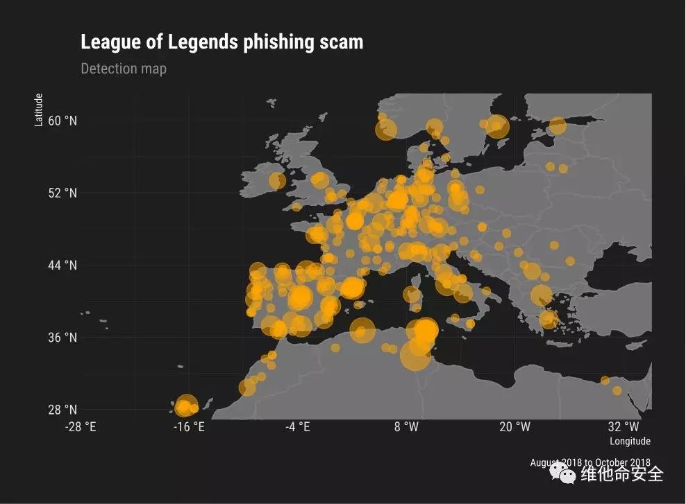 Avast研究团队在2018年夏季末观察到针对英雄联盟玩家的一个新网络钓鱼活动。攻击者主要针对西欧地区,大多数攻击发生在法国,其次是德国和西班牙。该钓鱼网站托管在免费的托管服务商000webhost上,以节省开支,而且钓鱼网站通常不会占用太多磁盘空间和产生较多的流量,因此攻击者往往会选择使用免费的托管服务。该钓鱼页面制作得十分精致,图像质量也没有降低,并在用户点击登录时将凭据发送至攻击者。