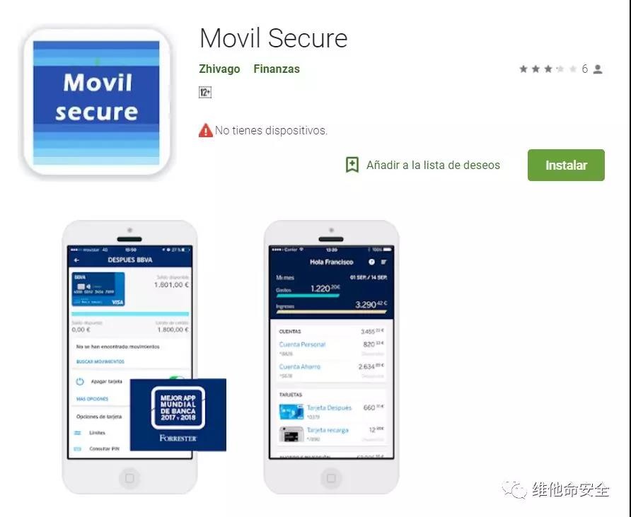 https://www.welivesecurity.com/2018/11/06/supply-chain-attack-cryptocurrency-exchange-gate-io/5、研究团队发现主要针对西班牙的虚假银行应用Movil Secure