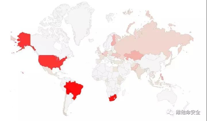 McAfee实验室的研究人员发现一个新俄罗斯恶意软件WebCobra,WebCobra会根据所感染的系统架构的不同安装不同的恶意挖矿软件,包括Cryptonight(x86)和Claymore Zcash(x64)。研究人员认为这种恶意软件是通过潜在有害的程序(PUP)分发的,其感染范围遍布全球,但主要是在巴西、南非和美国。