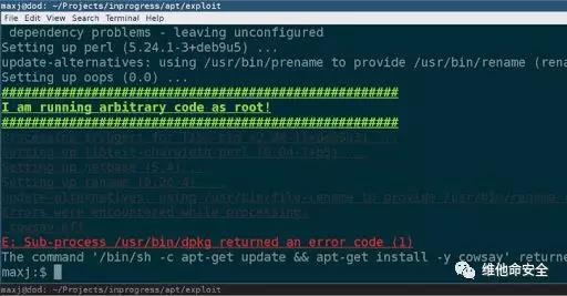 研究人员Max Justicz发现Linux包管理器apt/apt-get存在远程代码执行漏洞,该漏洞(CVE-2019-3462)允许攻击者进行中间人攻击并获取root权限执行任意代码。该漏洞的起因是apt默认使用HTTP通信,而其transport方法中处理HTTP重定向的代码没有正确检查某些参数,攻击者可通过中间人攻击使用伪造签名骗过该检查,进而在用户主机上安装任意程序。由于apt本身已经获取了root权限,该恶意程序可在root权限下执行。该漏洞影响范围极为广泛,所有使用老版本apt的主机都受到影响。apt开发人员已在版本1.4.9中修复了该漏洞。