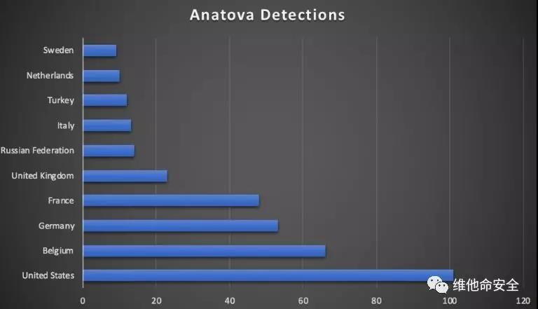 McAfee研究团队发现一个新的勒索软件家族Anatova。Anatova是在一个私人点对点网络中发现的,其图标伪装成游戏或应用程序,该勒索软件的感染范围遍布全球,但主要针对美国和欧洲(包括比利时、德国、法国和英国等)。Anatova具有强大的静态分析保护技术,包括字符串使用不同的密钥来加密;90%的调用都是动态调用;只使用少量非可疑的Windows API和C标准库等。Anatova还支持模块化的功能扩展。