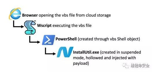 FireEye在2019年2月份发现一个新的钓鱼攻击活动,攻击者使用VBScript、PowerShell和.NET框架通过进程挖空技术来实施注入攻击,而不会在硬盘上创建任何PE文件。其分发的最终payload是NETWIRE后门,该后门可以接收C2服务器的命令,执行包括记录密钥、反弹shell、窃取密码、截屏等功能。