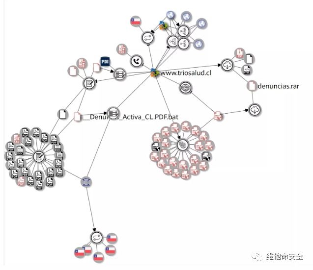 SI-LAB发现EMOTET的新一波攻击浪潮主要针对智利的金融和银行服务,在3月18日至26日期间已有176名受害者遭到攻击。该攻击活动仍以钓鱼邮件的形式进行,第一阶段释放恶意脚本__Denuncia_Activa_CL.PDF.bat,该脚本可绕过安全解决方案的检测。第二阶段的恶意文件denuncias.rar则利用了WinRAR中的ACE漏洞(CVE-2018-20250)来分发EMOTET。