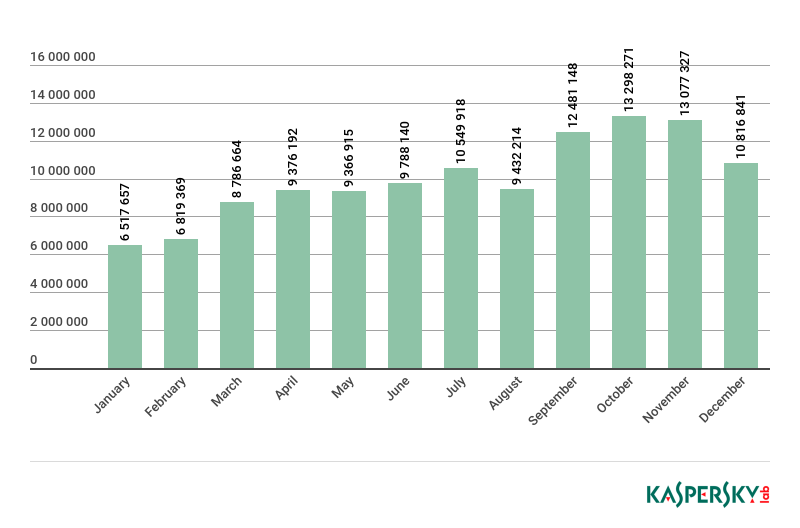 2018年犯罪分子仍在积极关注全球的主要事件,并利用它们达成自己的目的。与加密货币有关的钓鱼攻击稳步增长,并在2019年预计将出现新的骗局。尽管整个加密货币市场处在一个困难时期(价值下跌),犯罪分子仍会从中榨干最后一滴价值。