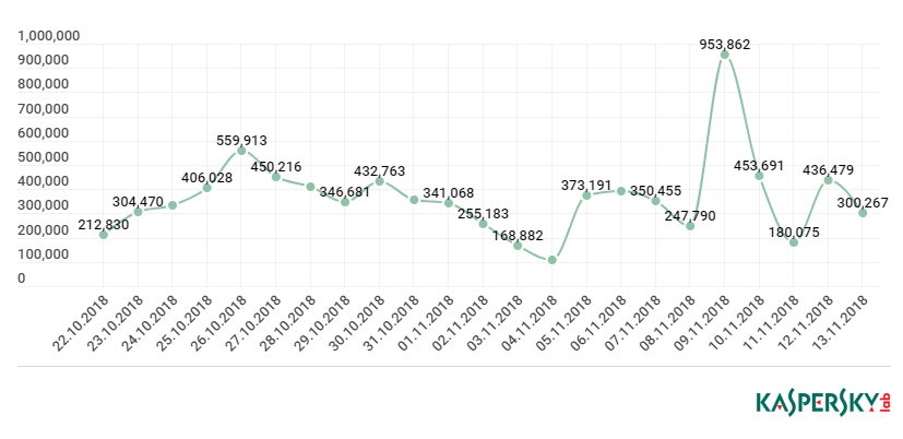 2018年卡巴斯基邮件反病毒系统的触发次数