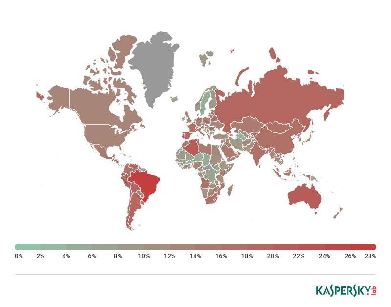 2018年,卡巴斯基的反钓鱼系统共被触发了482,465,211次,比2017年多了236,233,566次。18.32%的卡巴斯基用户遭到攻击。