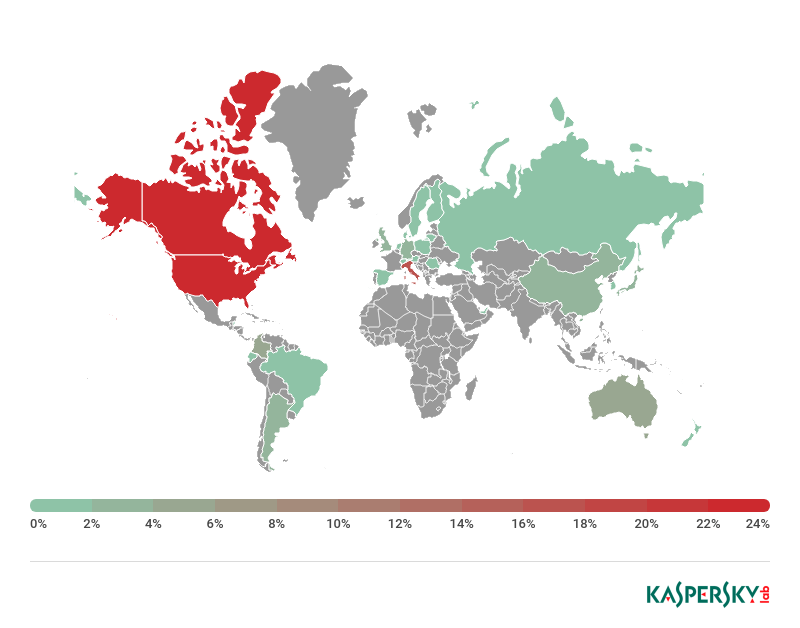 • 受攻击最多的国家:加拿大(24.89%)、美国(22.93%)、意大利(17.90%)