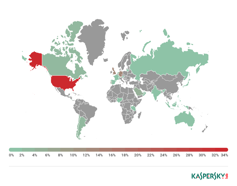 • 受攻击最多的国家:美国(35.01%)、英国(14.38%)、德国(13.57%)