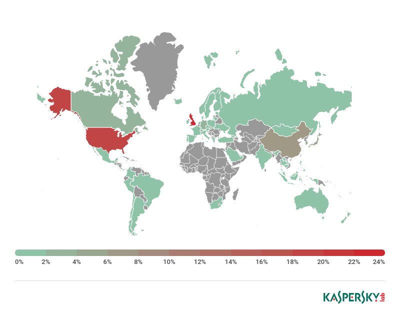 • 受攻击最多的国家:英国(25.70%)、美国(20.12%)、中国(7.78%)