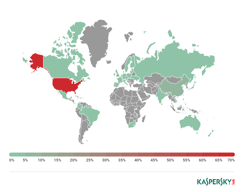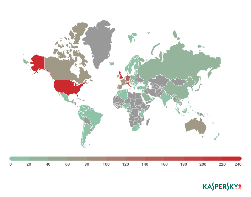 不出所料地,针对加密货币服务用户的攻击最常发生在美国、卢森堡和中国。这是由于许多加密货币服务都在这些国家注册。此外,2018年针对注册在英国、新加坡、爱沙尼亚、韩国和瑞士的服务的攻击数量也大幅增长。