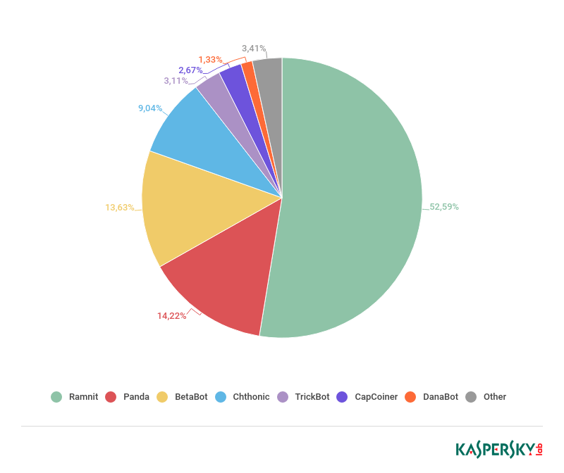 但也有坏消息,许多恶意软件扩大了它们的攻击范围:2018年Trickster(TrickBot)的目标列表新增了不少于11个国家,同时SpyEye 木马和银行木马IcedID 分别增加了超过9个和5个国家。