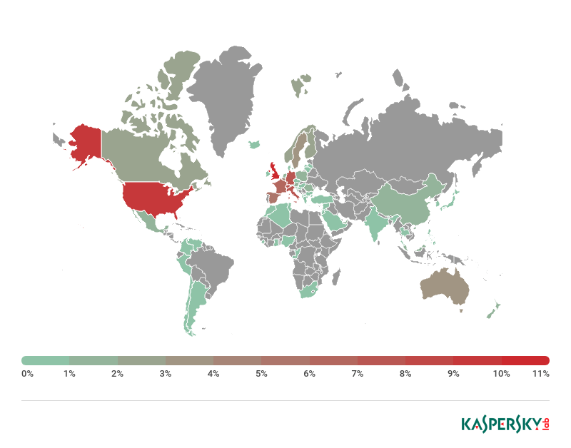 • 受攻击最多的国家:英国(11.02%)、美国(9.34%)、德国(7.99%)