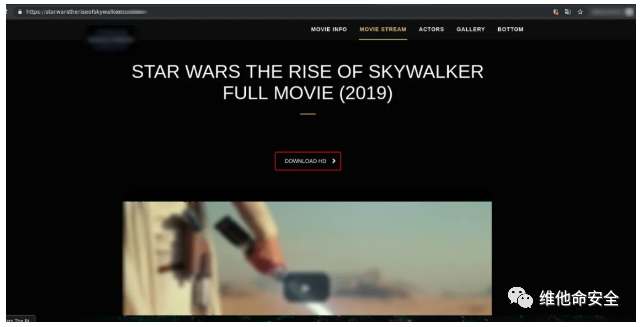 卡巴斯基安全专家发现攻击者正在利用热门电影《星球大战:天行者的崛起》来作为网络钓鱼和恶意软件攻击的诱饵。研究人员共发现了30多个伪装成官方电影账户或受感染的流媒体网站和社交媒体页面(这些网站的实际数量可能会更高),这些网站以要求注册为借口,试图收集用户的信用卡数据。此外,这些网站还旨在传播恶意软件,研究人员发现了约65个伪装成电影盗版的恶意文件。