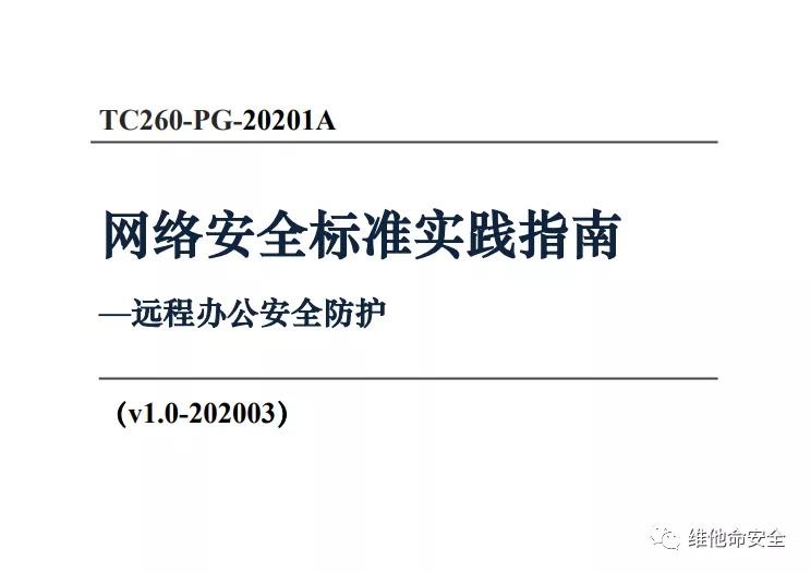 发布时间 2020-03-171.信安标委《网络安全标准实践指南—远程办公安全防护》