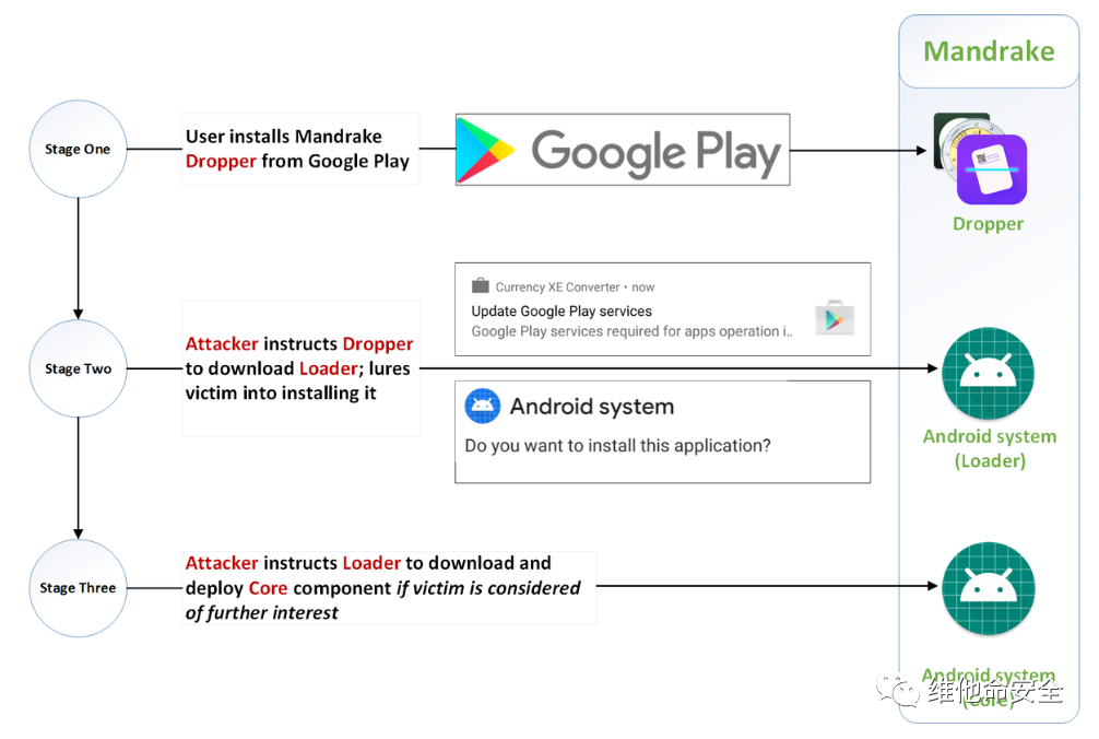 Bitdefender披露针对澳大利亚Android用户的间谍软件Mandrake,该恶意活动至少已经活跃了4年。Mandrake可针对Google Chrome、Gmail、澳大利亚澳新银行、澳大利亚联邦银行、墨尔本银行、SA银行、Australian Super和PayPal应用。通过分析在两个月内捕获的数据,研究团队发现了500个澳大利亚受害者,实际数字可能更高。Mandrake的第一个样本可追溯到2016年1月31日,攻击者可以利用该恶意软件访问首选项、屏幕记录、设备使用情况和不活动时间等信息,还可以调低电话音量并阻止通话或短信,以及进行凭据窃取、信息泄露、汇款和勒索等恶意活动。