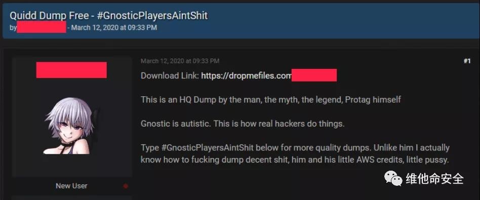 美国电子商务网站Quidd的约400万用户账户数据正在暗网传播。Quidd是一个用于交易贴纸、卡片、玩具和其它收藏品的在线市场,数据泄露似乎发生在2019年,但Quidd尚未发布任何安全事件的通告,目前尚不清楚该公司是否知晓该泄露事件。ZDNet从三个不同的来源获取了样本数据,数据中包含Quidd用户名、电子邮件地址和账户密码,该密码是由bcrypt哈希算法保护的。此外,ZDNet还从数据交易商那里获悉这些数据至少从从2019年10月和2019年12月就开始分别在黑客论坛和Pastebin上发布广告。建议Quidd用户尽快更改账户密码。