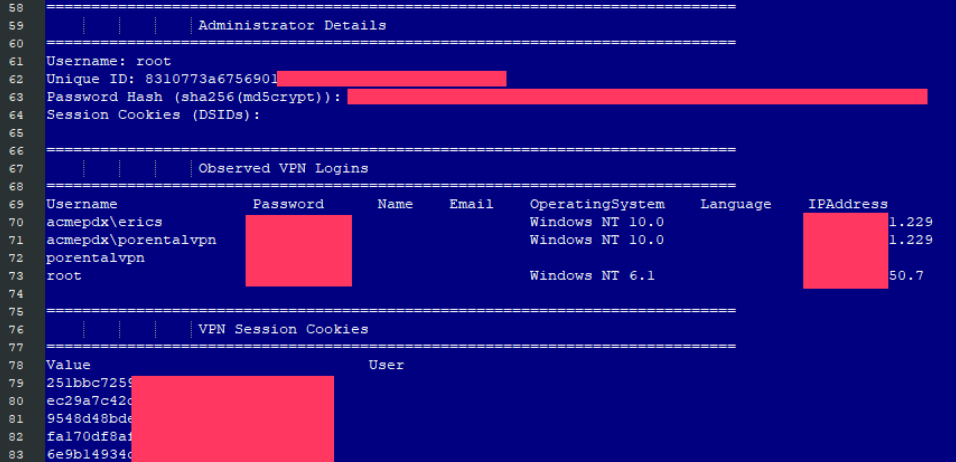 黑客在暗网上发布了900多个Pulse Secure VPN企业服务器的信息和明文密码。此次泄露信息包括服务器的IP地址、固件版本号、每个服务器的SSH密钥、所有本地用户及其密码哈希的列表、管理员帐户详细信息、最近的VPN登录名(包括用户名和明文密码)以及VPN会话cookie。威胁情报分析公司Bank Security发现列表中的服务器都运行了存在CVE-2019-11510漏洞版本的固件。因此,其认为黑客是扫描了服务器的整个Internet IPv4地址空间,并利用该漏洞来访问系统,转储服务器详细信息并将所有信息收集到一个中央存储库中。