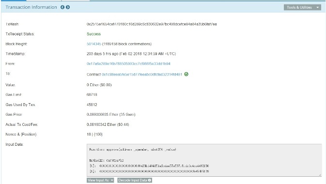监听到请求后,Oraclize会访问URL获得查询结果,然后调用__callback的函数,Oraclize返回的数据通过__callback函数参数传回智能合约。上图中函数调用的参数[3]中的“3334312e3533”即为当时的汇率:1ETH =/new_type/aqldfx/20180825/ /$341.53,随后智能合约会根据这个查询结果进行后续的逻辑处理。