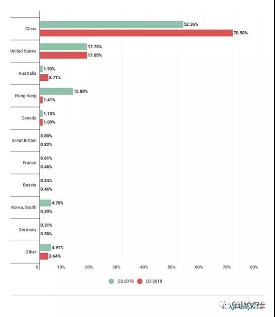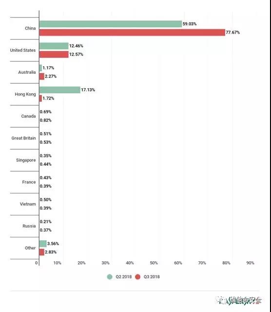 2018年Q2及Q3DDoS攻击的国家/地区分布