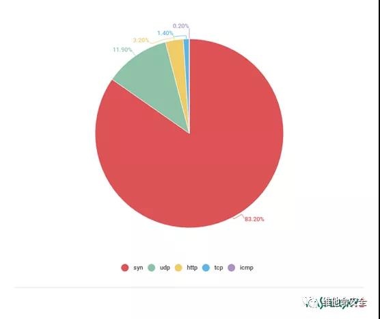 · 与上一季度相比,Linux僵尸网络的份额轻微增长。在这种情况下,DDoS攻击的类型分布没什么变化;SYN泛洪攻击仍然排在第一位(83.2%)。
