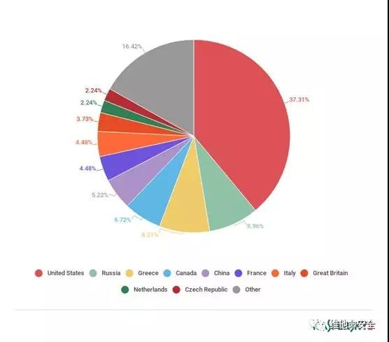 僵尸网络命令服务器数量最多的地区榜单(前十)出现了一些洗牌。美国还是第一,尽管其份额从上一季度的44.75%下降至本季度的37.31%。俄罗斯上升至第二位,其份额从2.76%增长至8.96%。希腊排在第三,其份额从0.55%暴增至8.21% -其排名上一季度也远在前十名开外。
