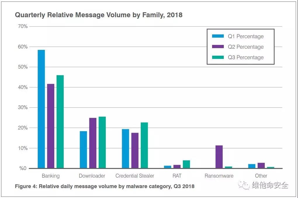 图7:2018年Q3,电子邮件中银行木马家族的分布