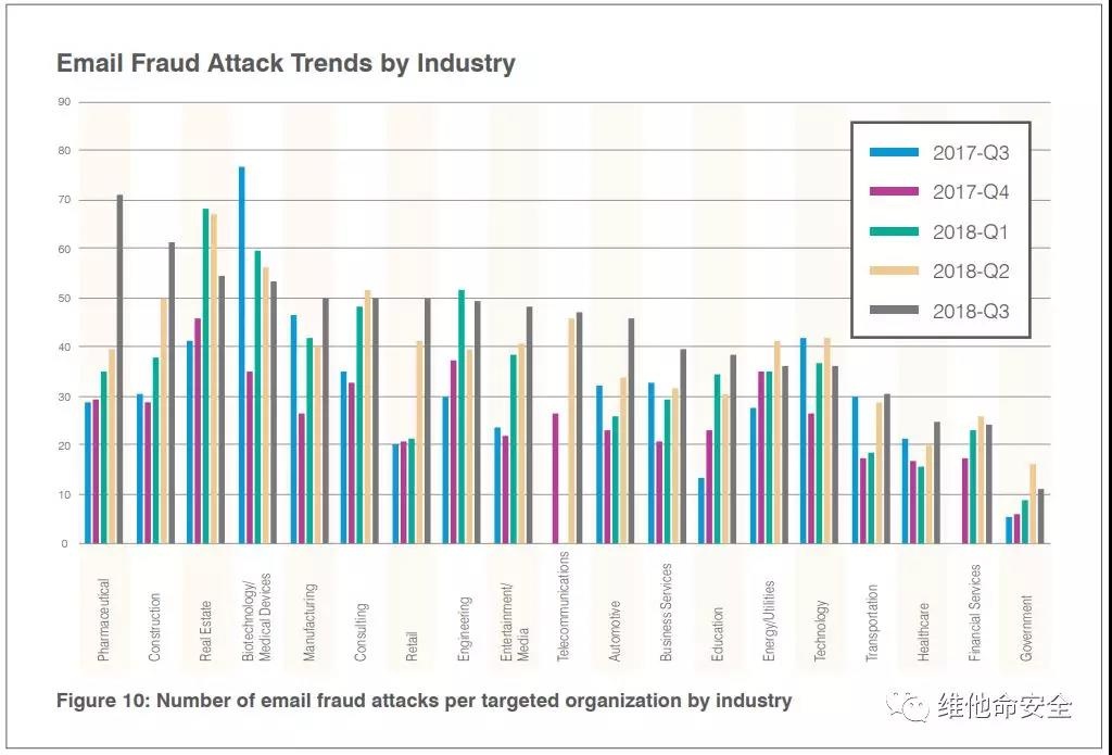 图10:不同行业中的电子邮件欺诈攻击趋势