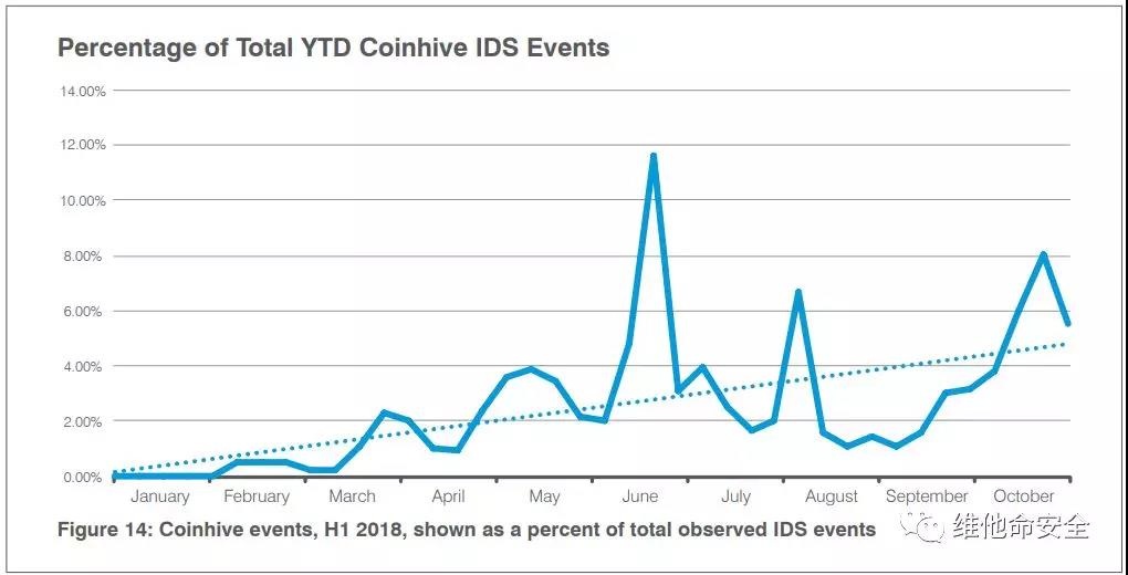 基于Coinhive的恶意挖矿攻击在Q2和Q3期间保持稳定,其数字差不多是Q1的6倍。