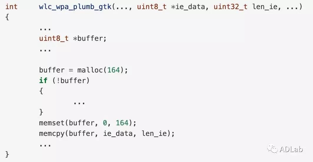 AP向Station发送的EAPOL M3消息中,如果vendor information字段长度大于32字节时,将会在wlc_wpa_sup_eapol函数触发堆溢出漏洞。