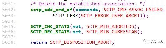 通过调试可知调用sctp_sf_do_9_1_prm_abort函数进行ABORT操作,该函数将会进行如下操作: