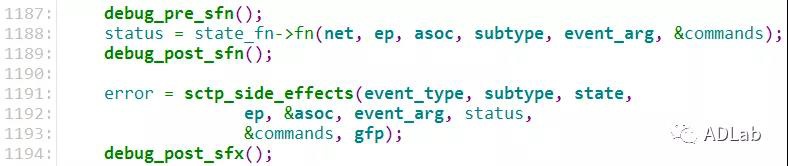 行1188正常返回后,行1191调用sctp_side_effects函数根据状态机对应的状态进行操作。