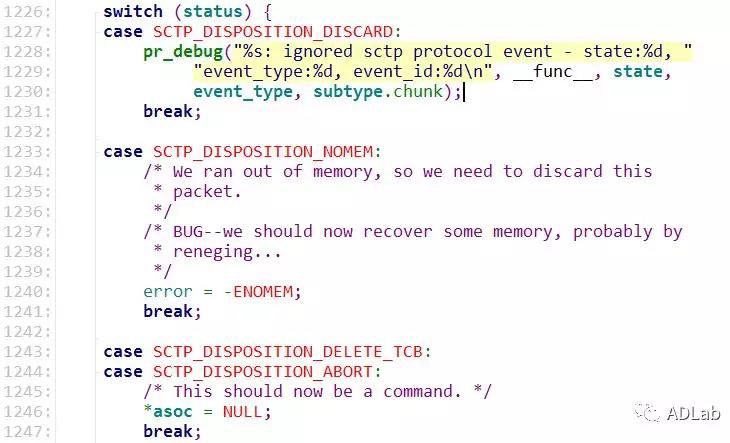 添加一条删除asoc的commands,然后返回SCTP_DISPOSITION_ABORT。正常返回,继续分析,返回到sctp_do_sm函数中。