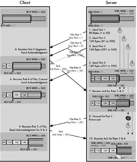 TCP数据包传输过程中,来自滑动窗口的数据包丢失可能对TCP吞吐量产生影响。TCP使用累积确认(ACK)方案解决该问题,其中不接收不在滑动窗口左边缘的接收段,这会强制发送方等待往返时间以找出每个丢失的数据包,或者不必要地重新传输已正确接收的段,从而降低整体吞吐量。