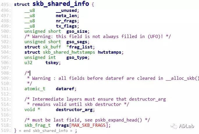 结构体最后一个成员是frags[MAX_SKB_FRAGS]数据。MAX_SKB_FRAGS声明如下所示: