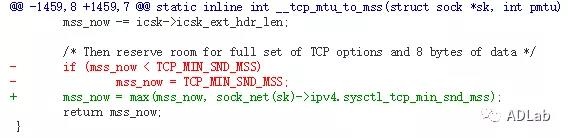 补丁在tcp_fragment()函数中加入了最小空间判断。Sk是sock结构体类型,每一个tcp链接对应一个。所以所有要发送的skb数据大小都要累加到sk->sk_wmem_queued中,sk->sk_wmem_queued表示为该套接字TCP写队列缓冲区大小。通常在使用时候需要判断该值是否够用。如下所示: