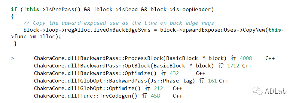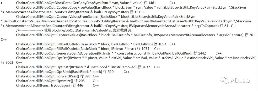 错误键值对是根据数据流分析的错误结果得出的。随后,这个键值对被加入了Block 4中blockOptData->capturedValues->copyPropSyms,其栈回溯位于: