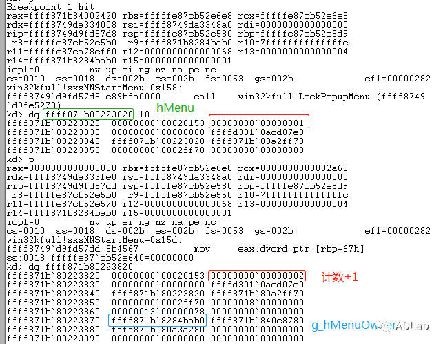 通过WM_NEXTMENU消息的回调函数开始为LPARAM赋值,赋值操作是为了修改hMenu的Owner,这样就可以将Owner的临时锁绕过。