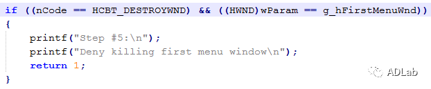 此时内核会接到销毁menu的消息,通过用户层的回调函数返回1阻止menu的销毁。