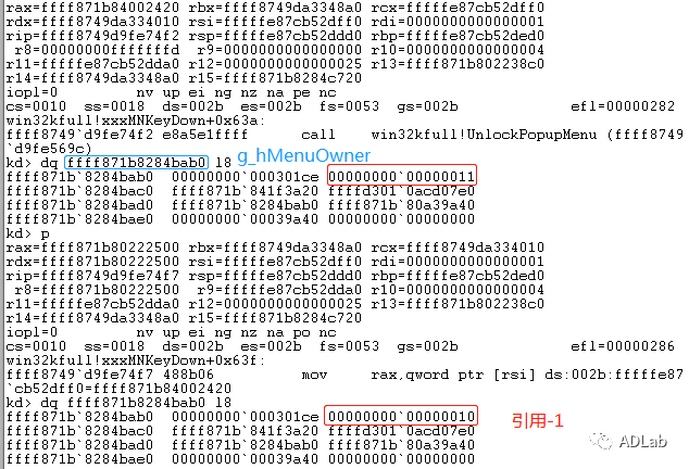 这里的问题就在于如何保证父窗口在ThreadUnlock函数执行的时候引用计数为1,因为要执行xxxMnOpenHierarchy函数需要将父窗口关联到一个menu窗口上,此时父窗口和menu窗口将会被一个永久锁锁住,下面我们介绍如何绕过永久锁。