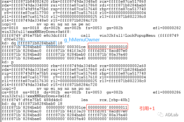 在上述创建过程中,内核通过LockPopuMenu函数分别为hMenu和g_hMenuOwner添加了永久锁,为了达成释放目的,这个永久锁需要被绕过。