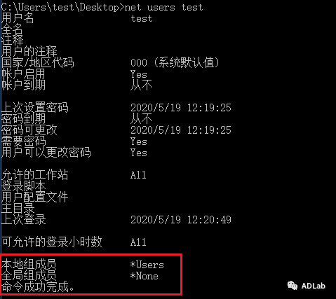 (1)在测试系统中创建一个标准用户test,并使用该标准用户登录系统。查看其所属用户组,确认其不是管理员用户组。