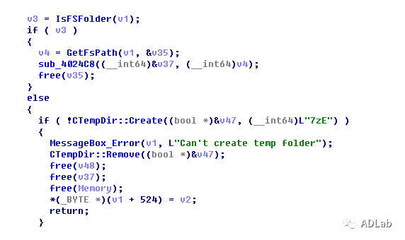 至此,VMware崩溃的原因基本分析清楚了。另一个疑问是,为什么7zip已经在系统Temp下生成了文件,并且VMware也已经获取到了路径参数,却在移动前自动删除了文件呢。这就需要从7zip中寻找答案。