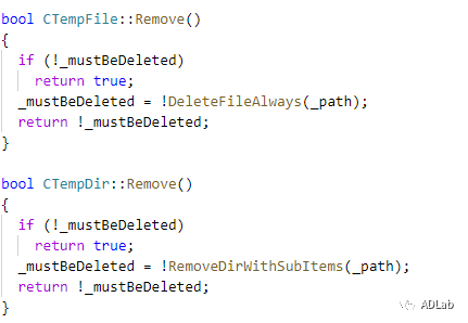 由上一节分析可知,Vmware crash原因是Temp目录下文件被删除。阅读7zip源码,锁定了CPP/Windows/FileDir.cpp中的文件删除函数。