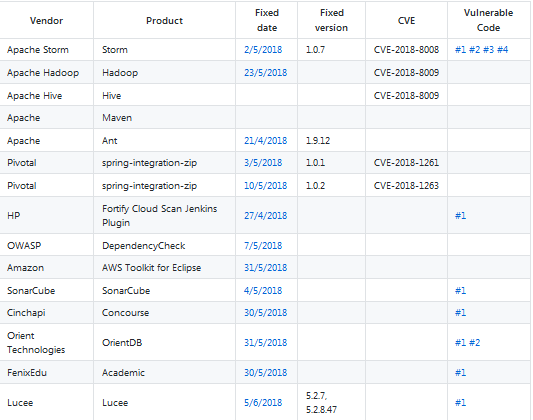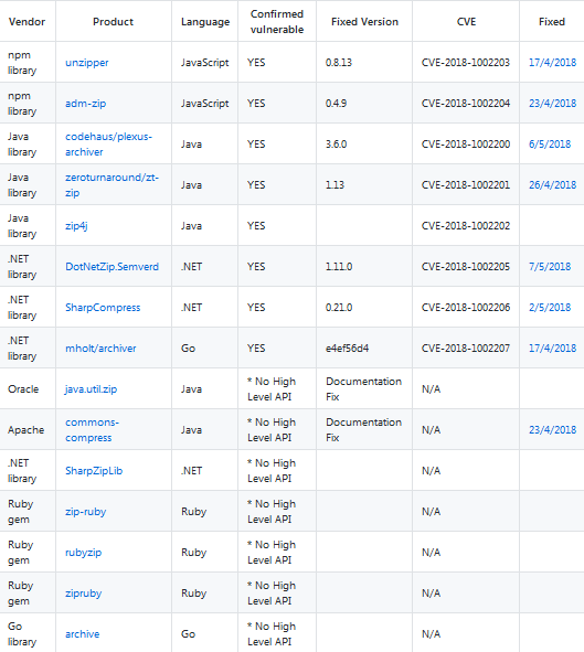 多个大型公司,包括Google、Oracle、IBM、Apache、亚马逊等在内的数千个项目受影响(见:https://github.com/snyk/zip-slip-vulnerability)。当然,这种类型的漏洞早已存在,但最近它已经在更多的项目和库中表现出来。