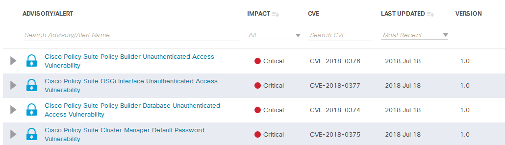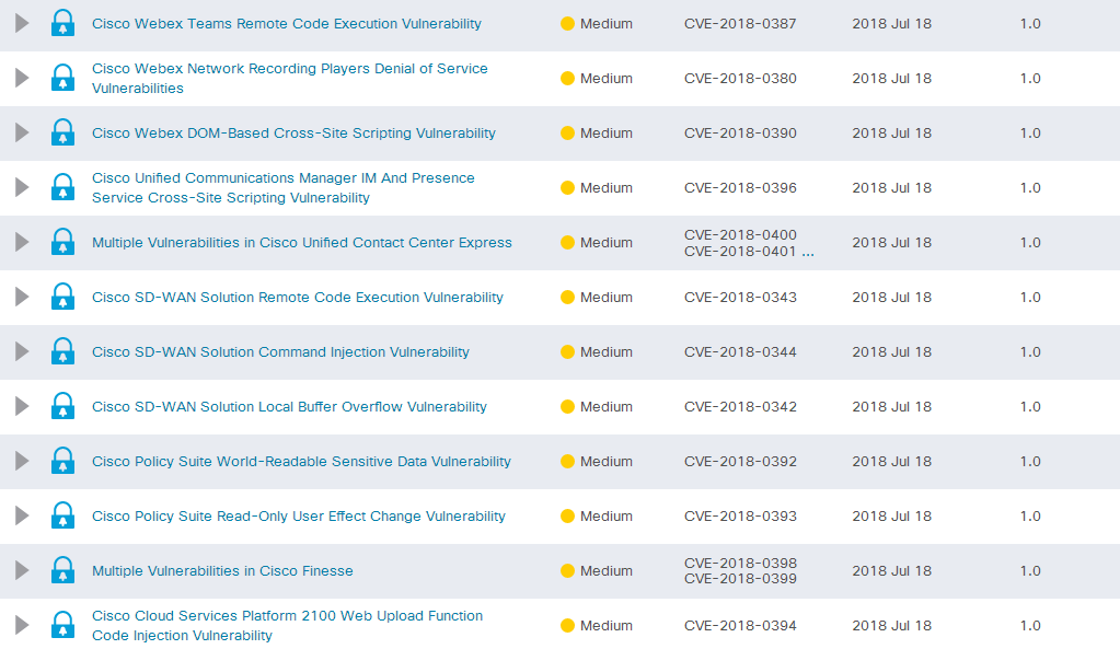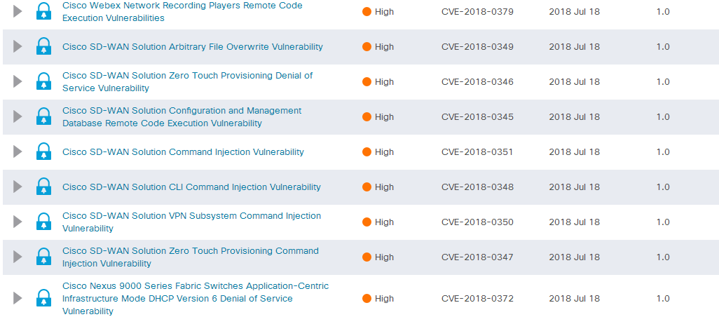https://tools.cisco.com/security/center/publicationListing.x?product=Cisco&sort=-day_sir&limit=100#~Vulnerabilities
