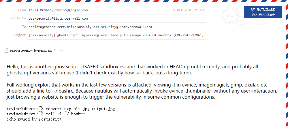 漏洞导致所有引用ghostscript的上游应用受到影响。 常见应用如下: