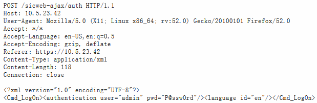 当执行Web管理界面上的登录时,以下内容请求发送到服务器: